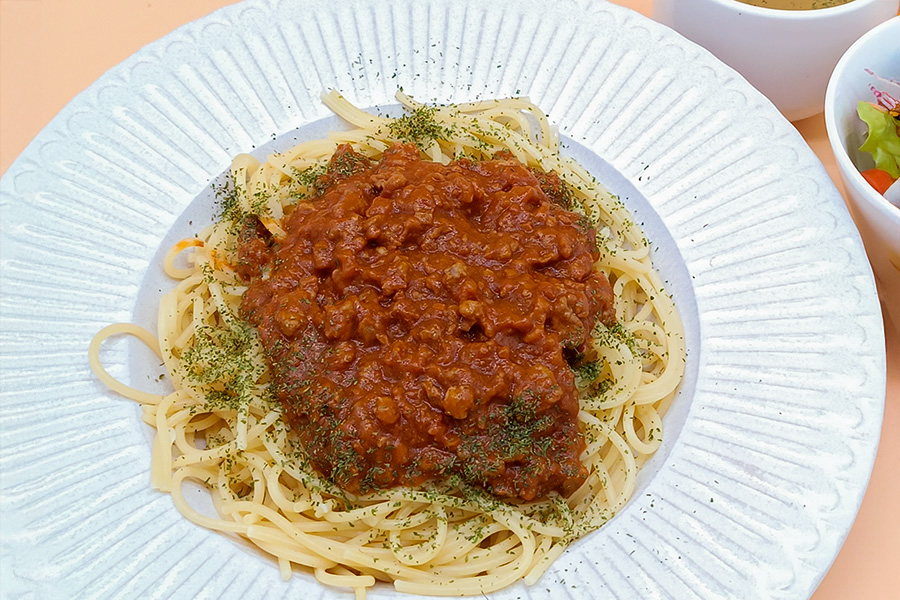 粗挽きビーフのミートソーススパゲティ