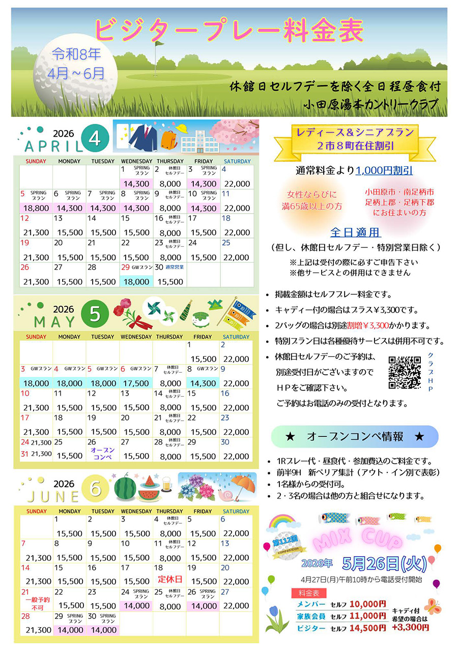 2026年7月までのご予約状況を更新しました